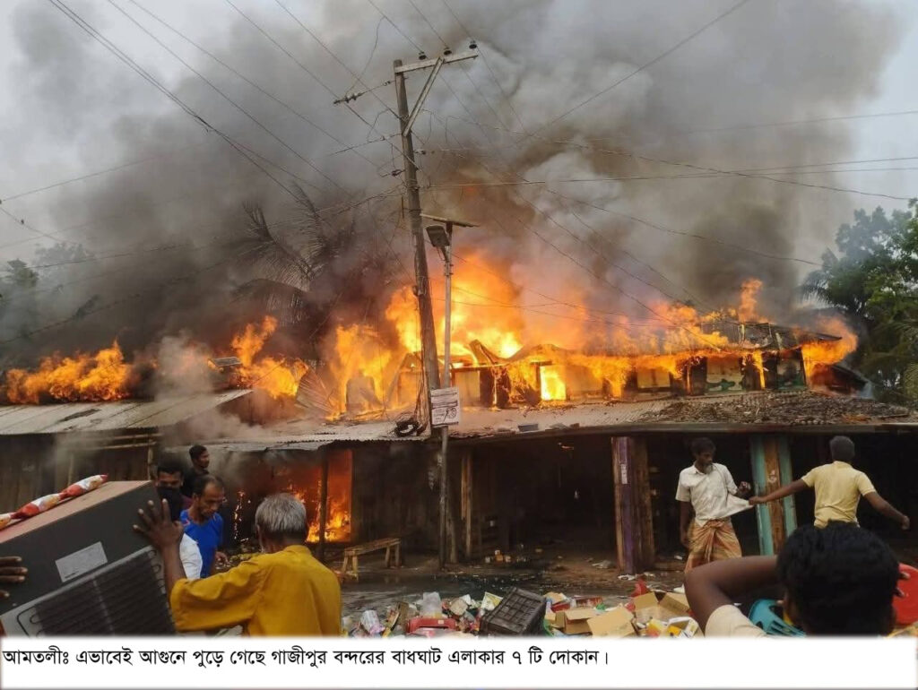আমতলী উপজেলার গাজীপুর বন্দরের বাঁধঘাট এলাকার ৭টি দোকান আগুনে পুড়ে ছাই হয়ে গেছে। এতে অন্তত ২০ লাখ টাকার ক্ষতি হয়েছে। ঘটনা ঘটেছে বুধবার সন্ধ্যায়। ক্ষতিগ্রস্থ ব্যবসায়ীরা শেষ সম্বল হারিয়ে দিশেহারা হয়ে পরেছেন। ক্ষতি পুরণে সরকারীভাবে আর্থিক সহায়তার দাবী।