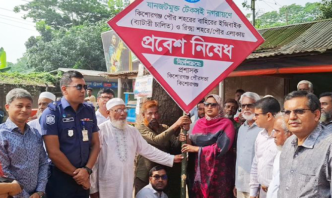 কিশোরগঞ্জ জেলা শহরের যানজট নিরসনে নতুন উদ্যোগ নেওয়া হয়েছে। যানজট মুক্ত রাখতে অনুমোদিত অটোরিকশা ছাড়া পৌরসভার বাইরের ব্যাটারি চালিত ইজিবাইক ও রিকশার প্রবেশ নিষিদ্ধসহ শহরের ১৩টি পয়েন্ট নির্ধারণ করা হয়েছে।