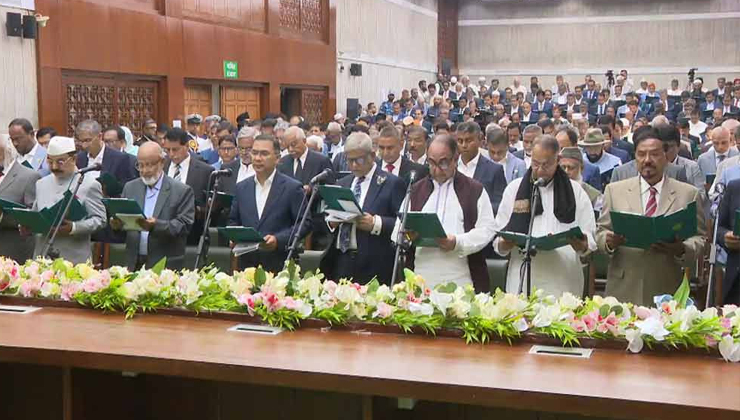 প্রথমে বিএনপি চেয়ারম্যান তারেক রহমানসহ বিএনপি থেকে নির্বাচিত সংসদ সদস্যদের শপথবাক্য পাঠ করান সিইসি। পরে তারা সবাই শপথ বইয়ে স্বাক্ষর করেন।