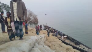 বগুড়া জেলার ধনুট উপজেলার গোসাইবাড়ী ইউনিয়নের আন্তঃজেলা চালুয়াবাড়ী ১নং খেয়াঘাট এলাকায় ভয়াবহ নদী ভাঙনের কারণে সংশ্লিষ্ট এলাকা ও আশপাশের কয়েকটি উপজেলার ব্যবসা-বাণিজ্য কার্যত স্থবির হয়ে