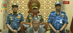 রাষ্ট্রপতির সাথে রাজনৈতিক দলের নেতৃবৃন্দ ও তিন বাহিনীর প্রধানগণের এক বৈঠক অনুষ্ঠিত হয়েছে। আজ সোমবার সন্ধ্যায় বঙ্গভবনে রাষ্ট্রপতি মোঃ সাহাবুদ্দিনের সভাপতিত্বে অন্তর্বতীকালীন সরকার গঠনের লক্ষ্যে