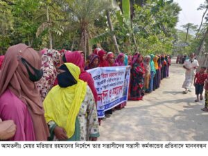 আমতলী পৌরসভার নির্বাচন পরবর্তি মেয়র মতিয়ার রহমানের নির্দেশে তার সন্ত্রাসী বাহিনী কর্তৃক সহিংসতা ও হামলার প্রতিবাদে মানববন্ধন ও সমাবেশ করেছে এলাকাবাসী। মঙ্গলবার বেলা ১১ টার
